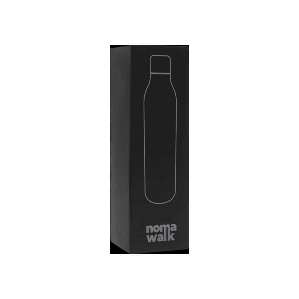 Botella doble pared, sellada al vacío con recubrimiento de cobre. Interior de acero 304 y exterior de acero 201. Pintura color negro mate. Tapa de acero a rosca. Mantiene por más de 12 hs la temperatura de las bebidas calientes y 24 hs de las bebidas frías. Presentación en caja de regalo.