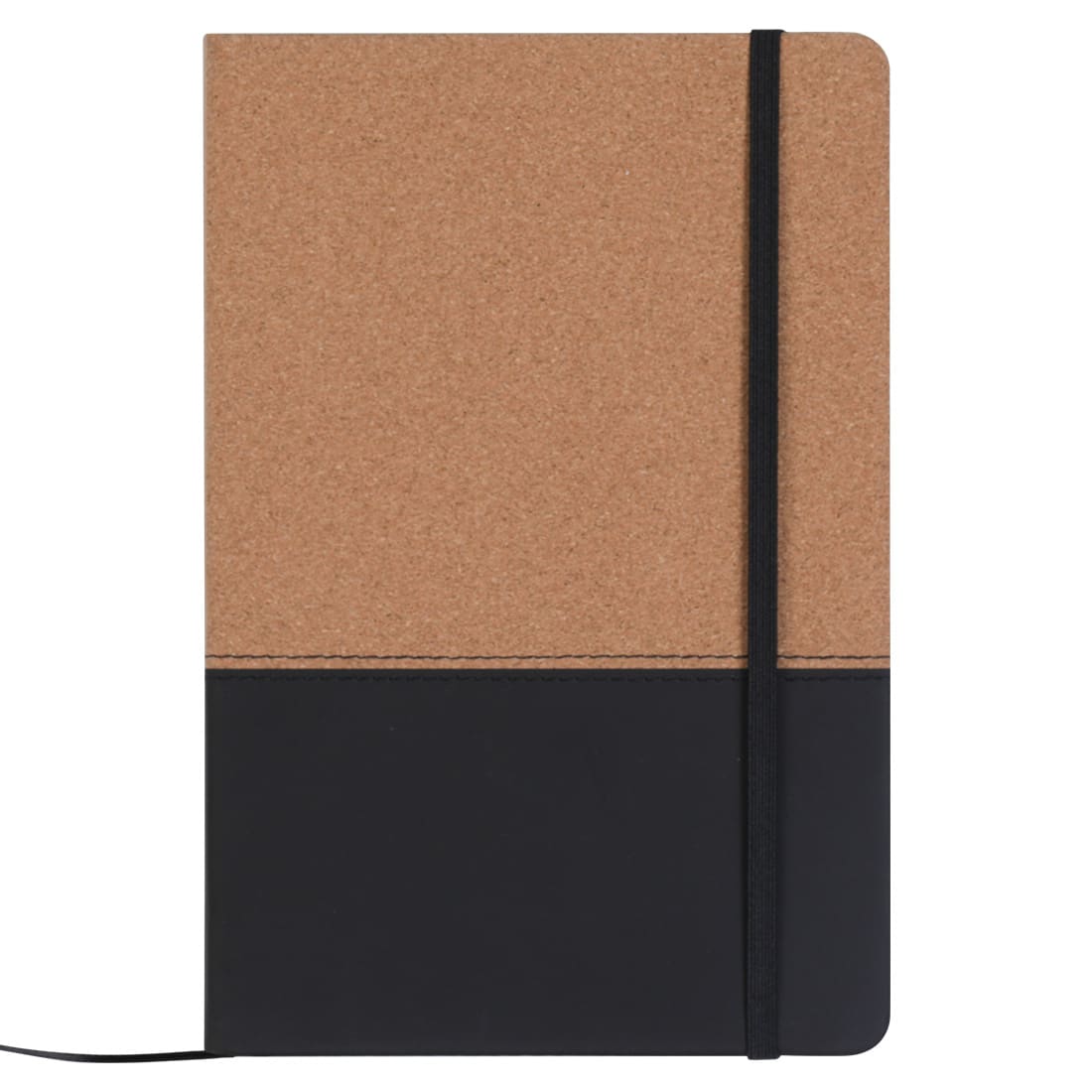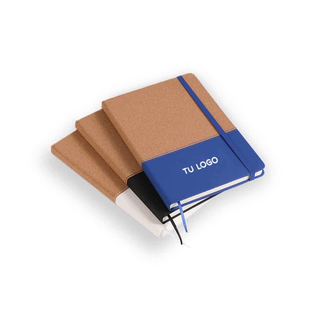Cuaderno con tapa de corcho y PU. Cinta marca página y elástico de cierre. 80 hojas lisas.