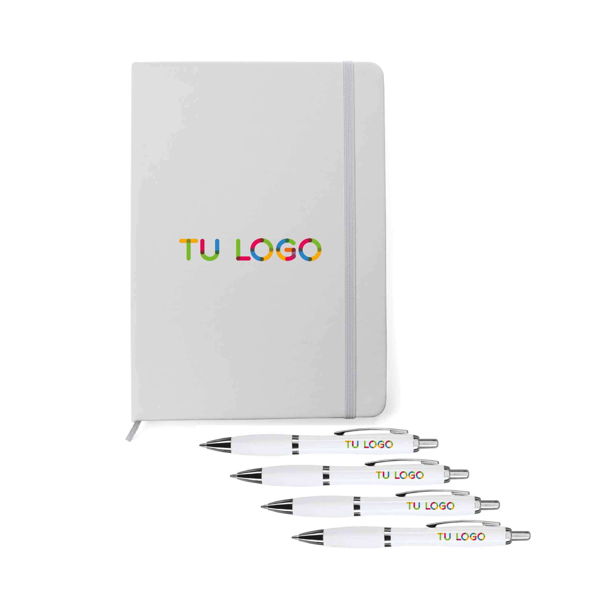 Set corporativo en caja laminada mate de papel. Cuenta con un cuaderno A5 de hojas rayadas, bolígrafo roller y una botella reutilizable de acero inoxidable con una capacidad de 350ml. Es ideal para regalos corporativos, kits de bienvenida, acciones promocionales o para uso ejecutivo diario.