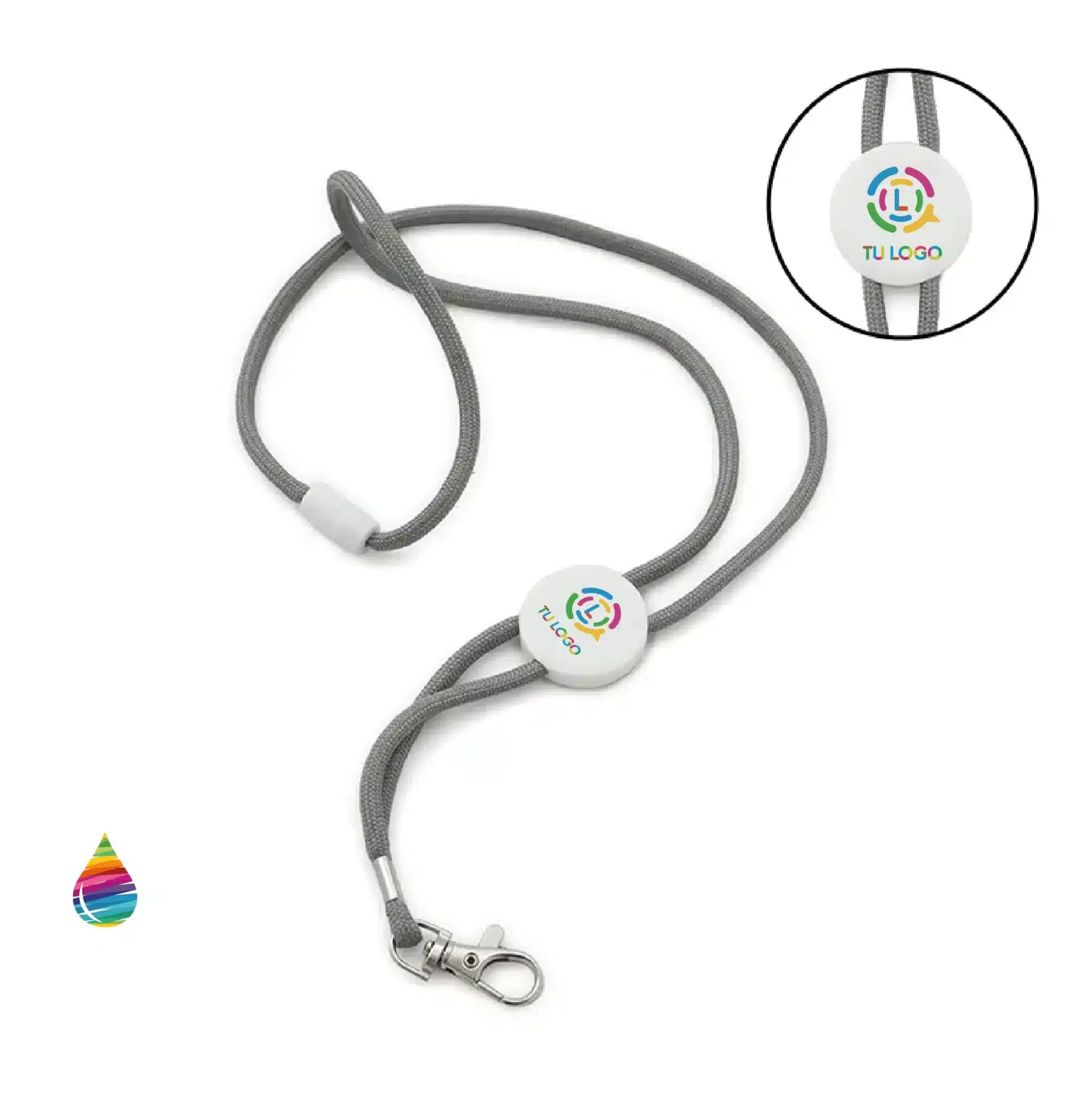 Accesorio confeccionado con un resistente cordón, cuenta con un gancho metálico que permite enganchar tus llaves, tarjetas de identificación o cualquier otro objeto. Ideal para mantener tus llaves y accesorios organizados y al alcance en todo momento, ya sea en el trabajo, en eventos o durante tus actividades diarias. Medidas: 50 x 3 x 0,6 cm. El producto se presenta en una bolsa de PLA 100% compostable..