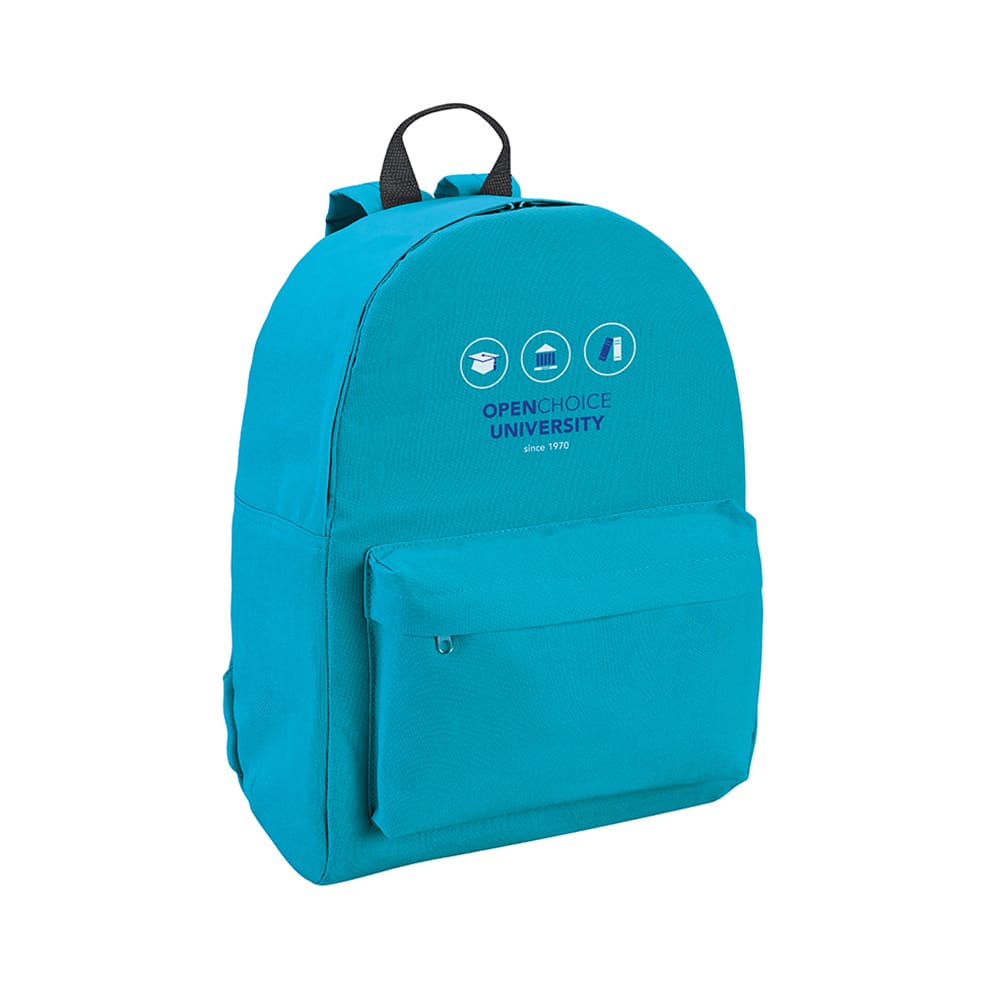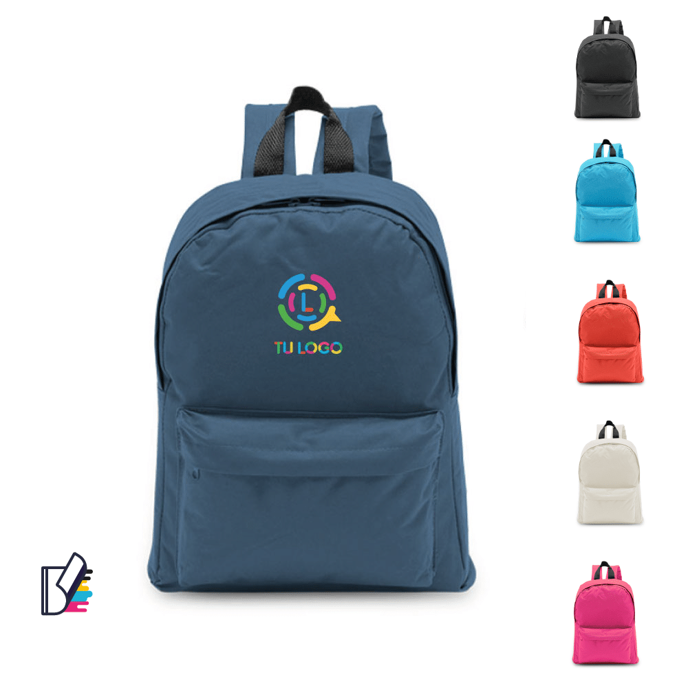 Mochila confeccionada en tela políester. Con doble cierre y bolsillo frontal amplio.
