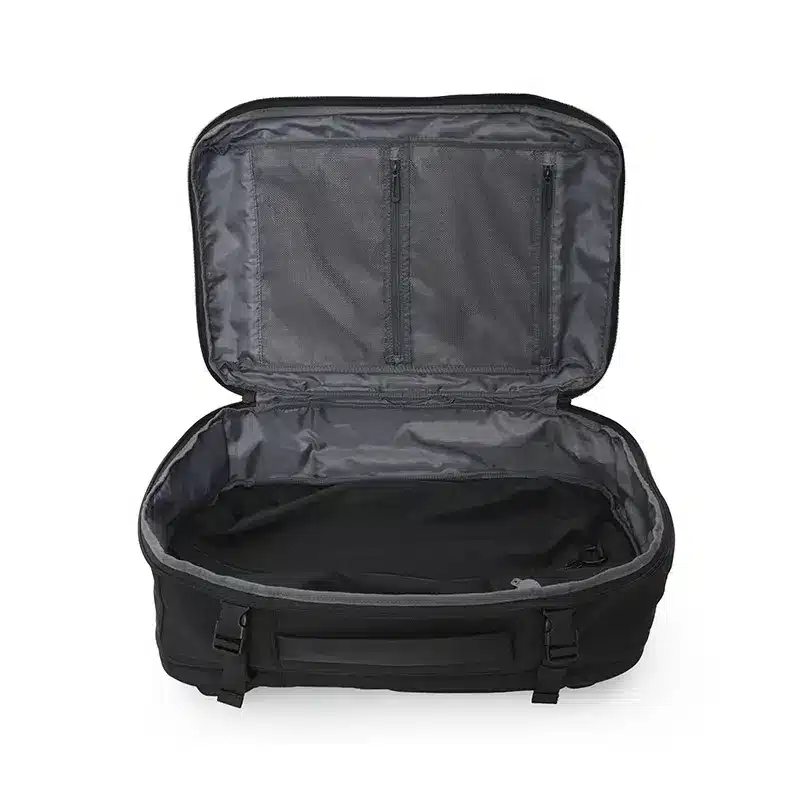 Descripción general del producto: Mochila de viaje expandible. Fabricada en poliéster 1800D en el frente y 2520D en la parte trasera y base. Cuenta con múltiples compartimentos con cierre, sistema de compresión al vacío y extensión para mayor capacidad, bolsillo frontal de acceso rápido, correas acolchadas ajustables y manija lateral. Es ideal para viajes de negocios, escapadas de fin de semana o uso diario gracias a su diseño versátil y gran capacidad de almacenamiento.