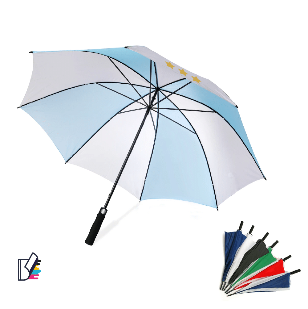 Descripción general del producto: Paraguas de doble capa de nylon de alta resistencia al viento, impermeabilidad y calidad. Posee un robusto marco de 8 varillas de apertura y cierre manual, realizado con fibra de vidrio super ligero y diseñado para soportar lluvias y vientos fuertes. Mango de plástico cubierto con una goma con reborde para un agarre cómodo y no deslizante en condiciones de humedad. El paraguas de doble capa permite que el viento atraviese la tela para evitar que se pueda romper. Ideal para golfistas.
