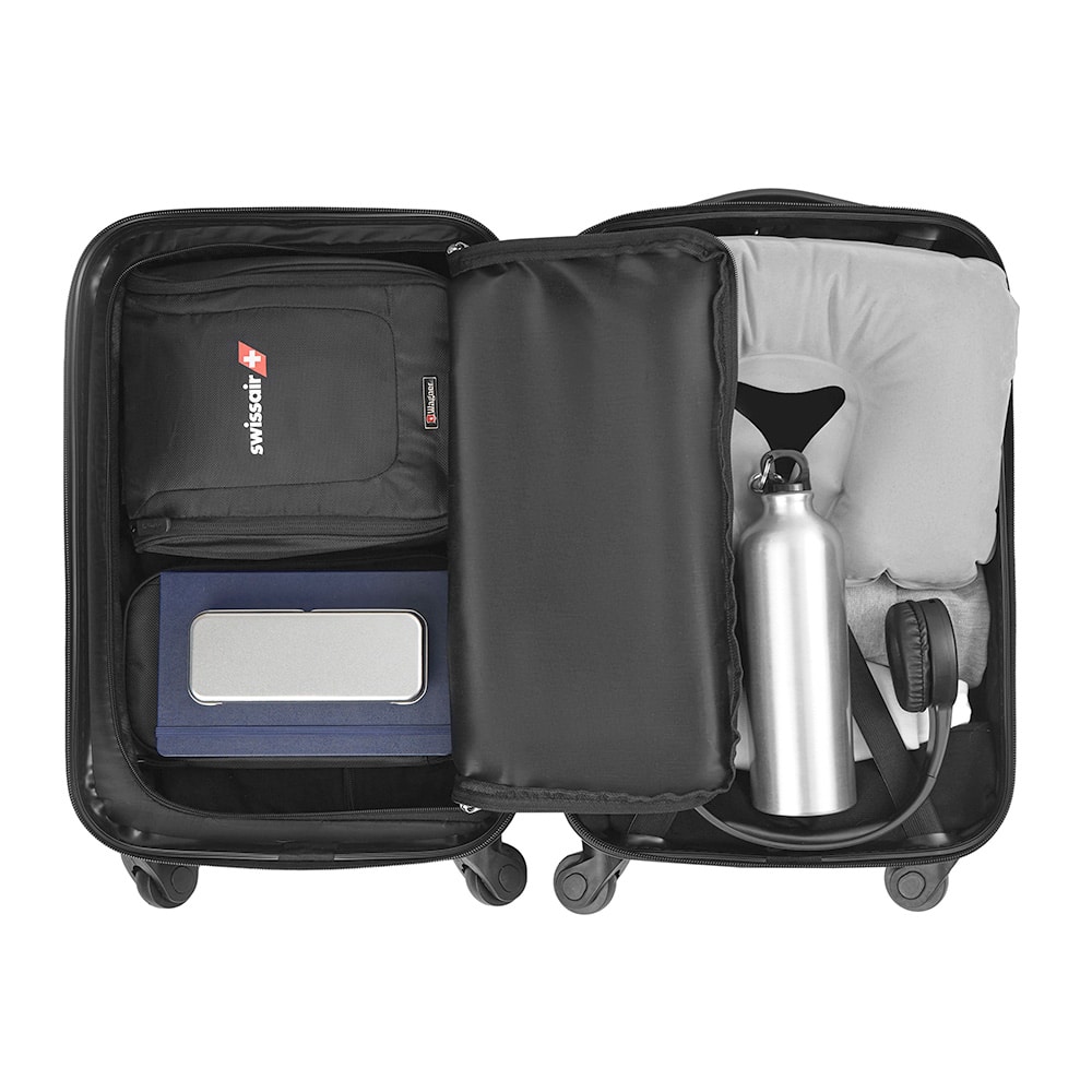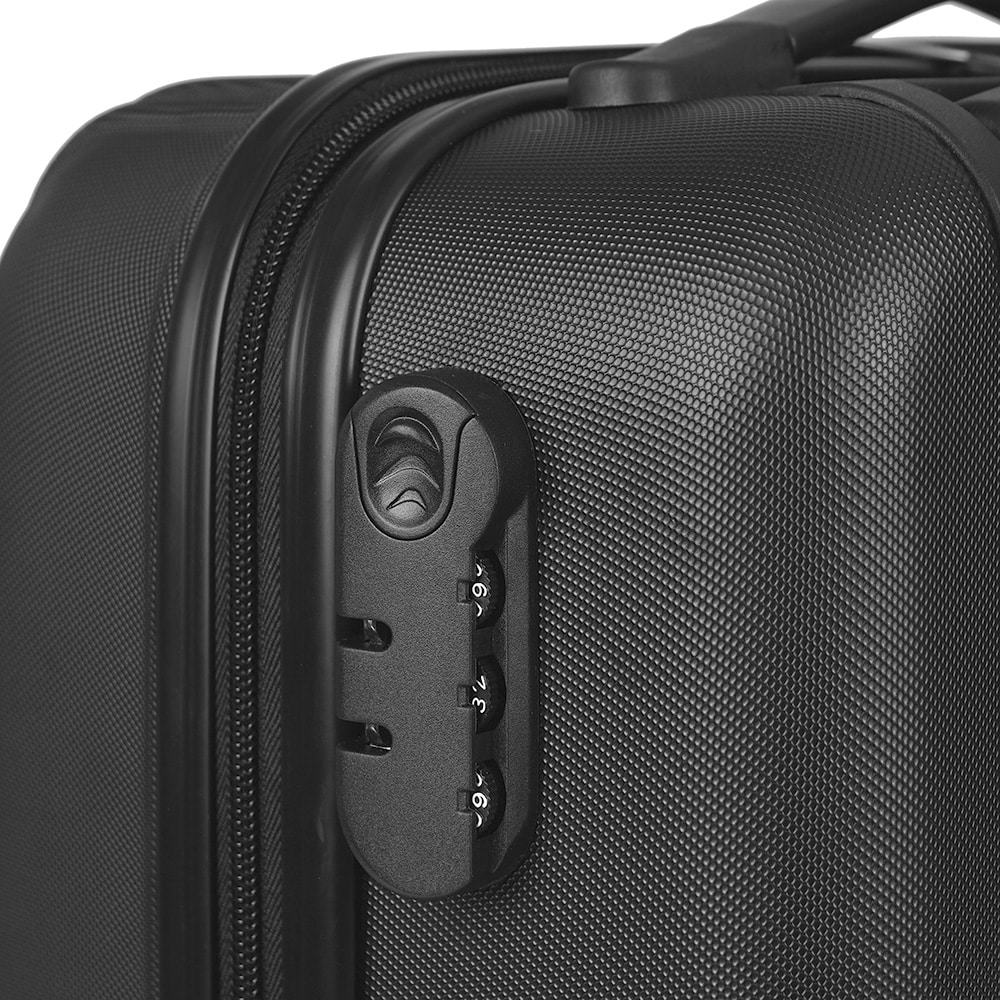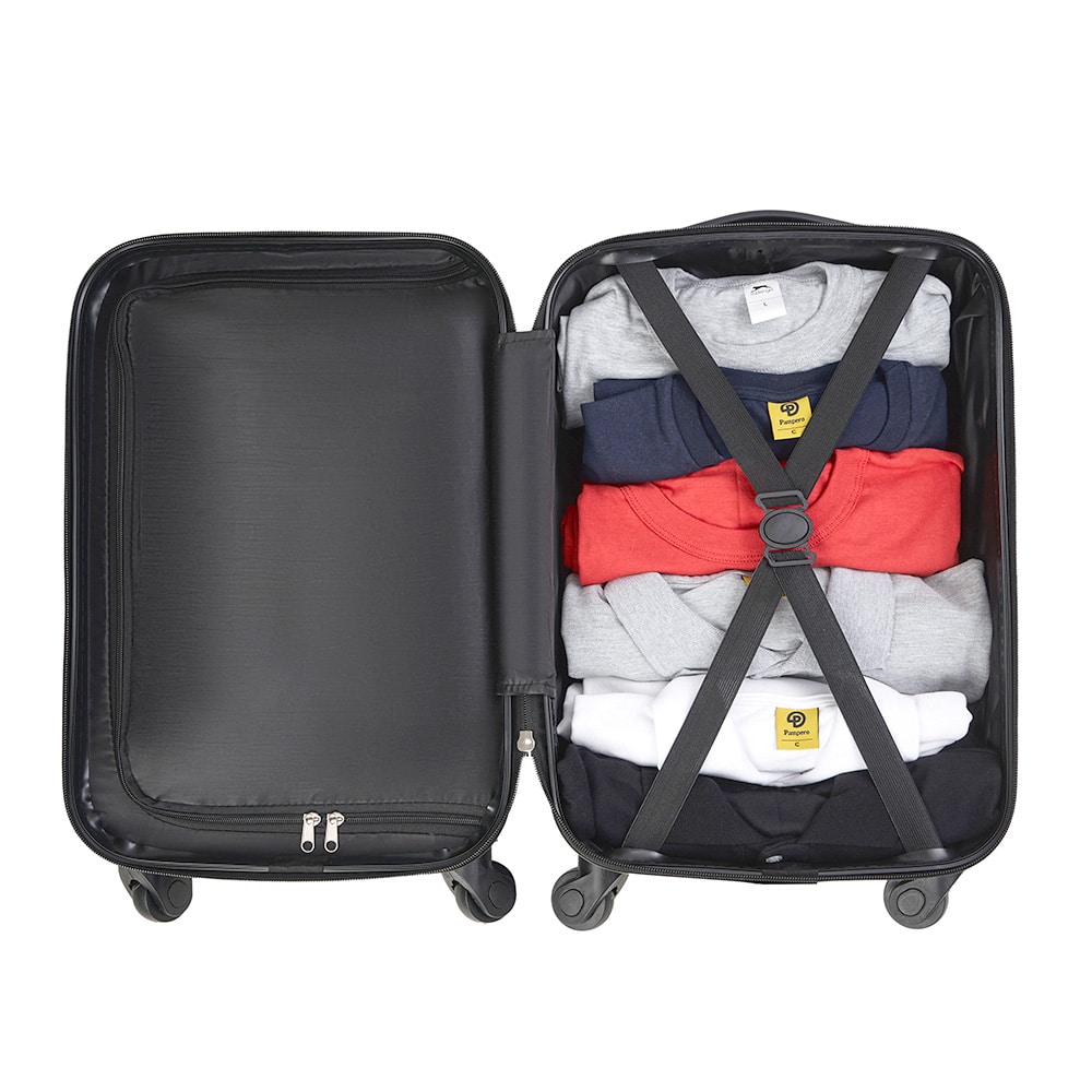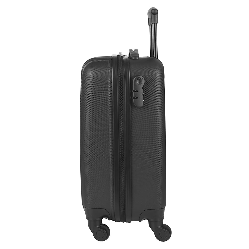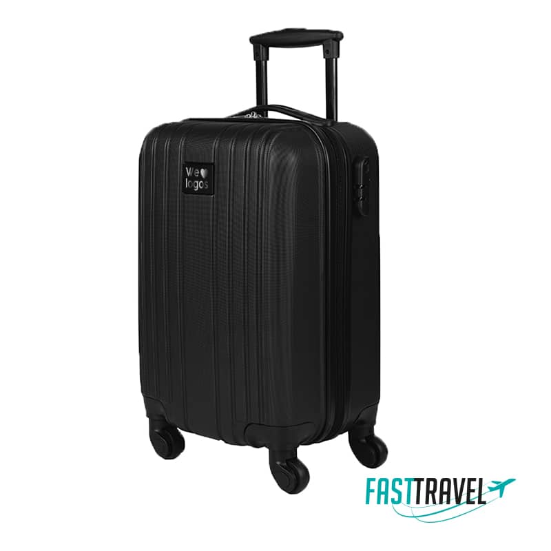 Las fechas, precios en portada y entregas son estimativas y están sujetas a cambios. Trolley realizado en material ABS rígido. Manija regulable en altura, interior forrado, contiene tiras de compresión internas en uno de los módulos y en el otro división interna con cierre. Sistema de ruedas giratorias 360° reforzadas. Cierre con lock. Chapa frontal metálica para aplicar logo. Medidas: 22 x 31 x 51 cm. Fast Travel